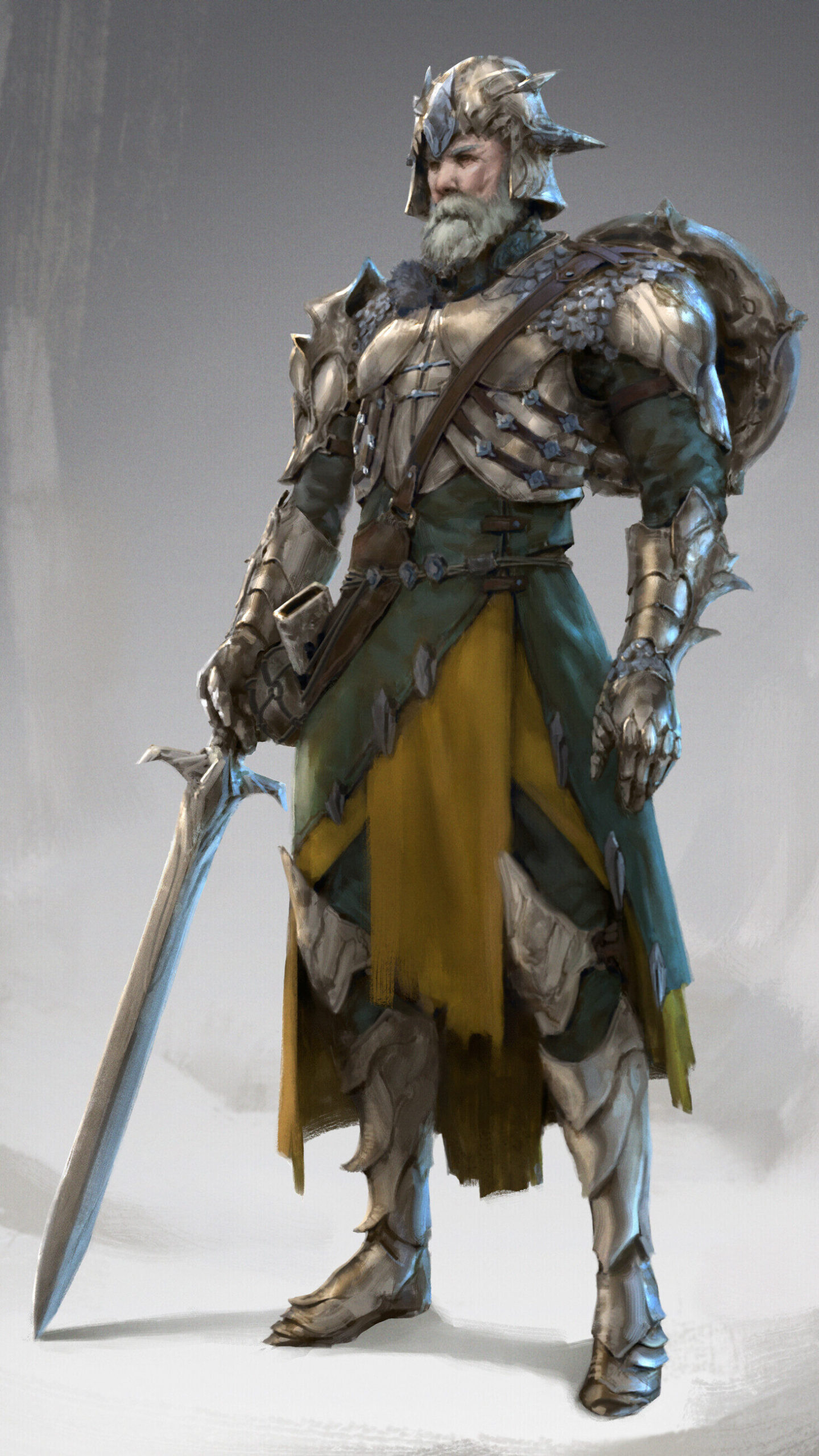 Questo anziano condottiero, a discapito della sua evidente avanzata età anagrafica, dimostra una stazza ed una postura in armatura che farebbero invidia a molti giovani guerrieri.