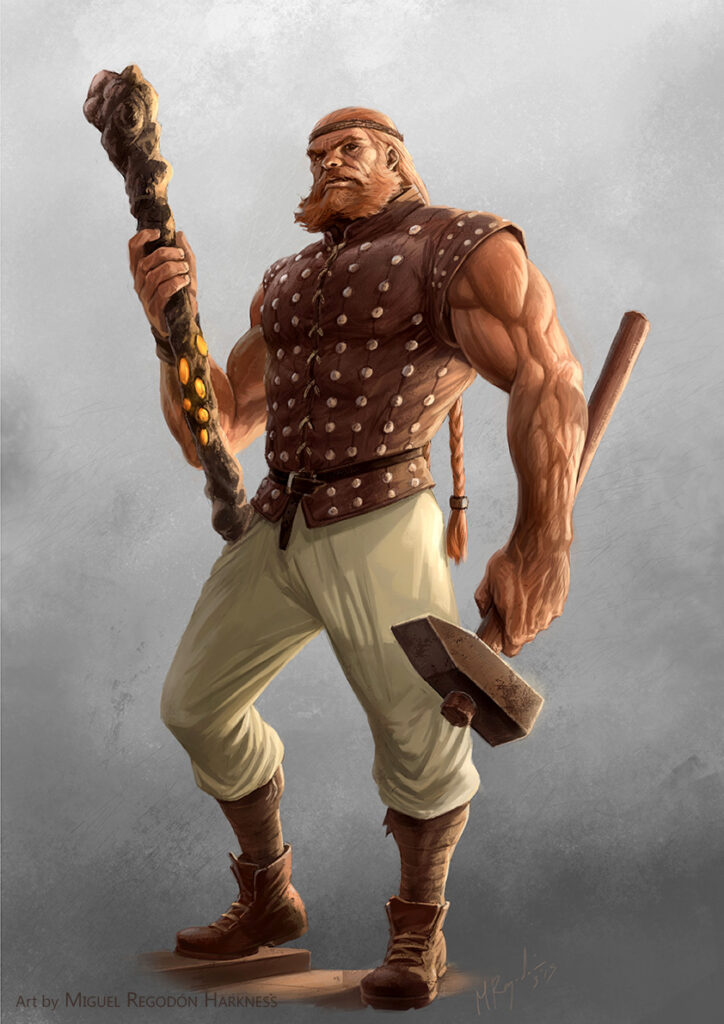 Nonostante la sua altezza spropositata superi i 3 metri e possegga una stazza altrettanto importante, è estremamente goliardico e gentile, con modi che a tratti risultano persino raffinati ed è un amante dell’arte della forgiatura, di cui è un grande maestro.